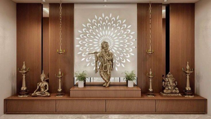 Pro Tip: Use soft yellow or white lighting – it makes the space more serene and spiritually uplifting.